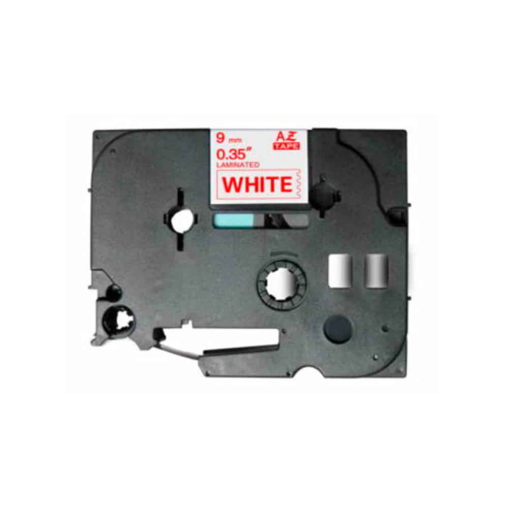 Fita Compatível Brother TZe222 Laminada Texto Vermelho em Fundo Branco 9mm x 8 metros