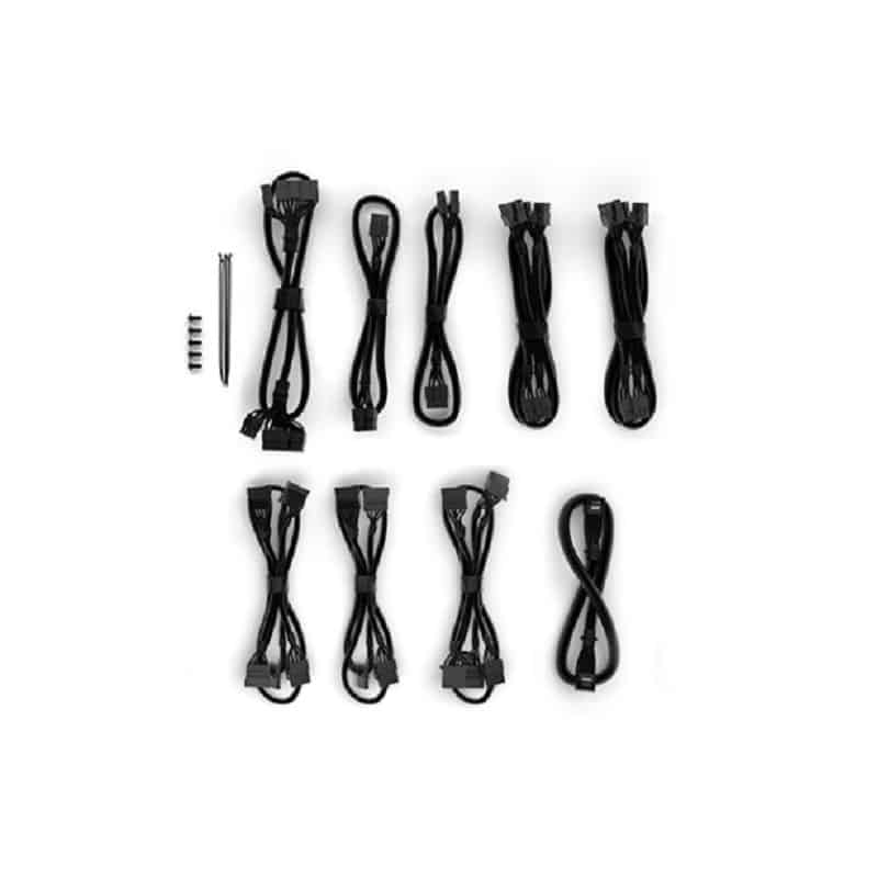 Cabos modulares revestidos com até 100 cm de comprimento simplificam a instalação de componentes e reduzem a confusão irritante. O resultado é um maior fluxo de ar e melhor resfriamento, mesmo nos maiores gabinetes de PC.