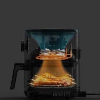 O óleo dentro dos alimentos é totalmente frito através da circulação de ar aquecido em 360°, proporcionando uma deliciosa comida com menos gordura. A circulação em alta velocidade da corrente de calor garante que o alimento seja aquecido de maneira uniforme, criando uma camada externa crocante e mantendo o interior macio.