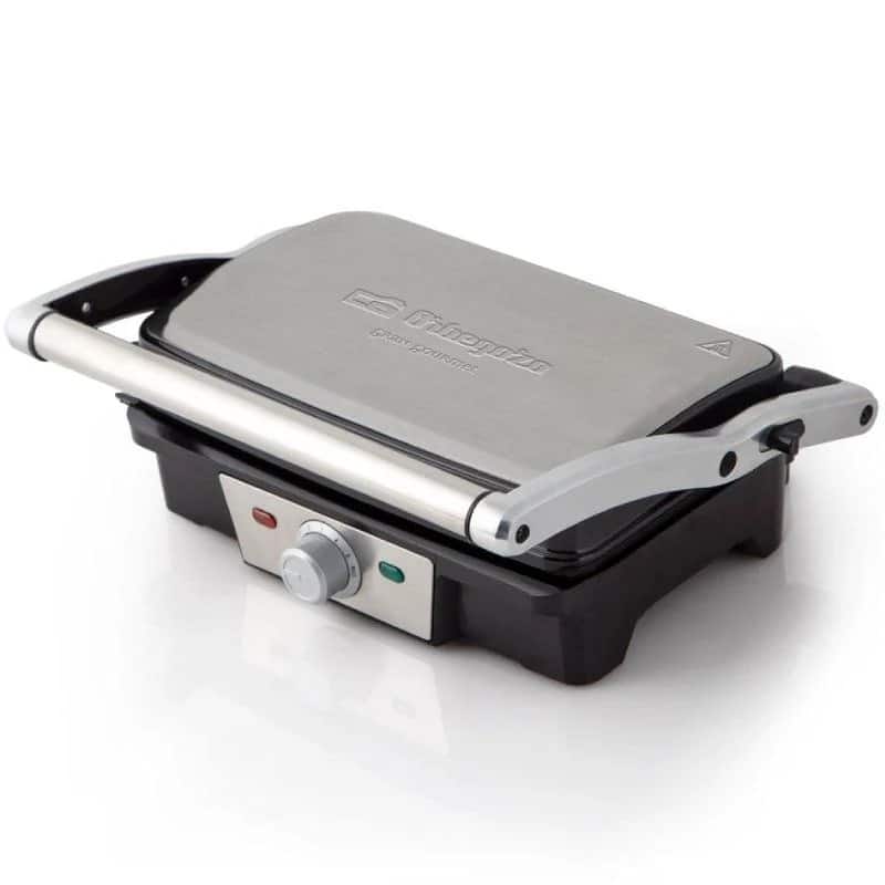 Grelhar é mais fácil com a grelha de aço inoxidável Orbegozo. Cozinhar sem óleo torna-se funcional quando temos equipamentos tão eficientes. Não será necessário assistir ao cozimento e todo o controle estará em suas mãos. A inovação deste produto é o seu sistema de abertura de 180 graus. Esta grelha possui duas superfícies para grelhar; cada refeição pode ser cozinhada independentemente, sob o mesmo calor.
