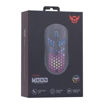O rato KOOD RGB vem acondicionado numa embalagem Premium, de estrutura rígida, resistente e agradável ao toque.