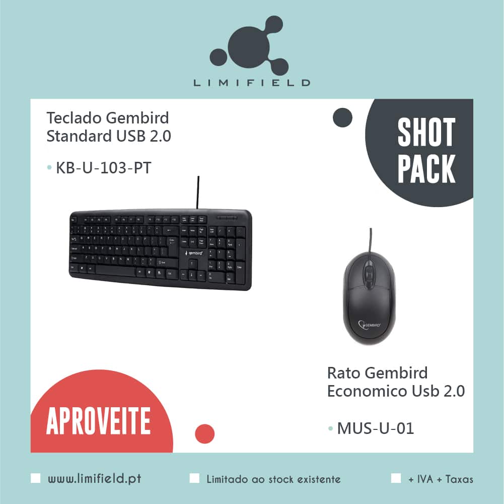 Shot Pack – Teclado Gembird Standard USB 2.0 + Rato Gembird Economico Usb 2.0