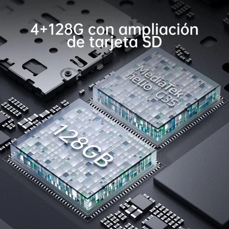 Processador: MediaTek Helio G35 Octa-core (até 2,3 GHz)