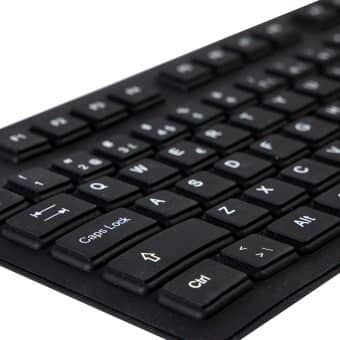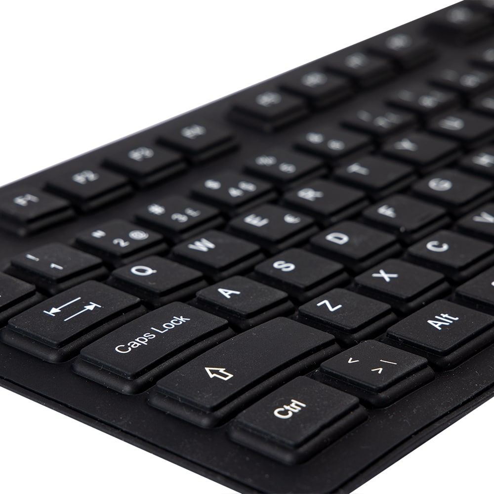 Revestido em silicone, resistente a pó e água, este teclado pode ser utilizado em situações de exposição a sujidade e humidade.