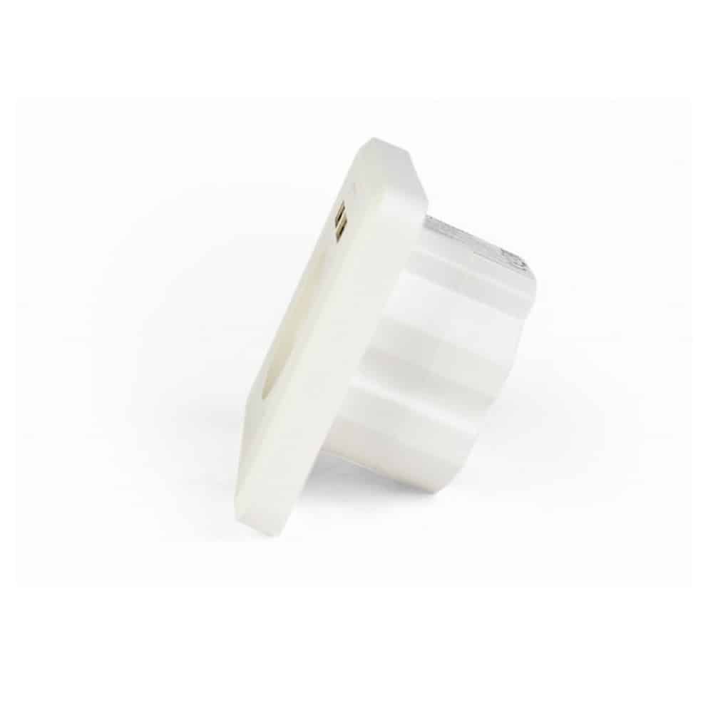 - Dimensões: 84 x 84 x 43 mm (profundidade mínima da caixa de montagem: 45 mm)