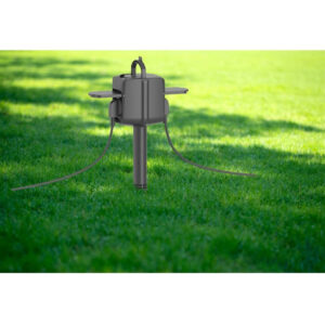 O tomada externa bidirecional inteligente R6079 vem com um sistema de suporte múltiplo, oferecendo as melhores possibilidades de instalação ao ar livre. Você pode aparafusar o pino fornecido para fixar o R6079 em areia, lama ou relva ou pode aparafusar um pé com 4 entradas para que o R6079 possa ficar na parede, numa pedra ou para por exemplo em uma plataforma de madeira.