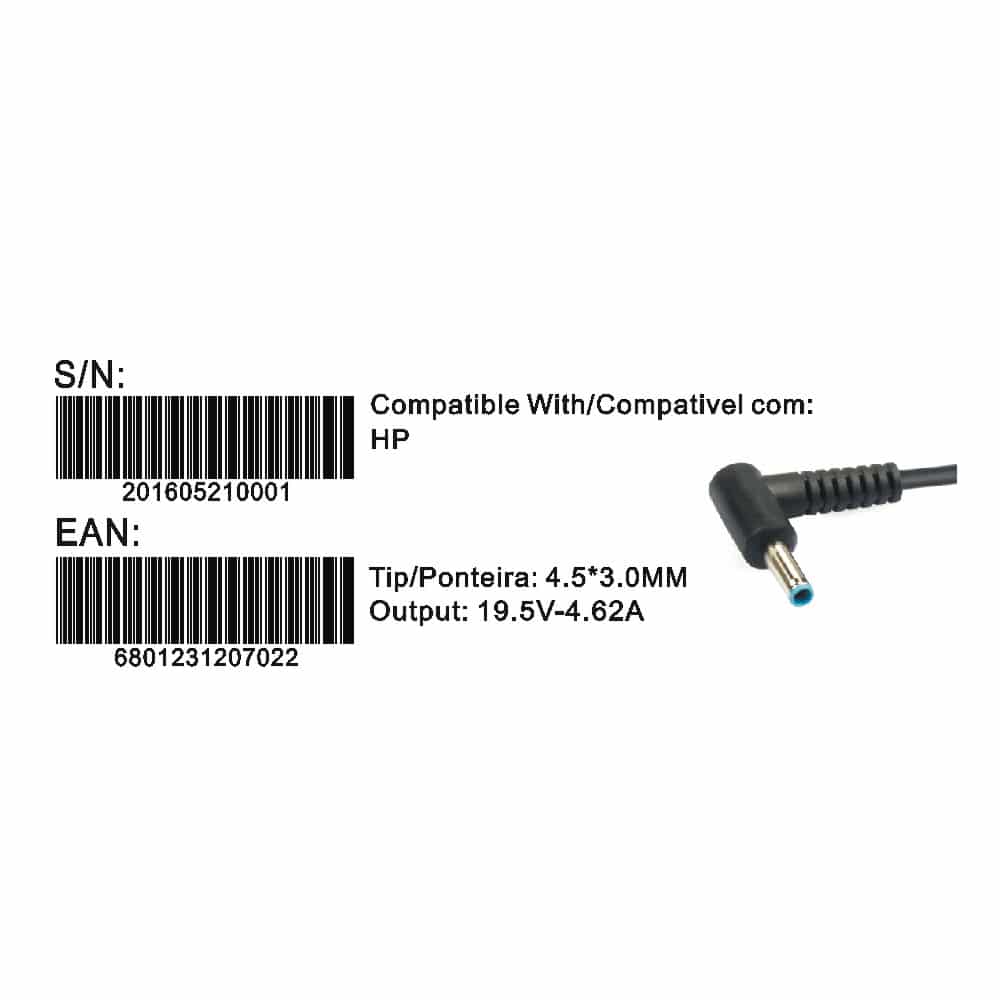Especificações Transformador Compativel 2HIX Hp 19.5V 4.62A Tip 4.5*3.0