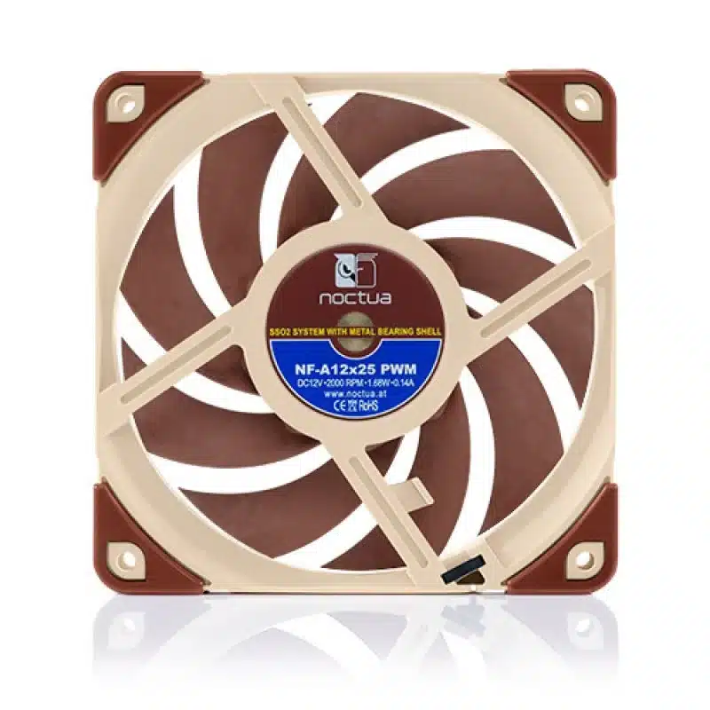 - Desempenho de vanguarda. Os ventiladores Noctua de 120mm como o NF-F12 e NF-S12A são conhecidos como alguns dos melhores do mercado e receberam mais de 400 prémios e recomendações da imprensa internacional. Graças à sua maior eficiência e engenharia, a NF-A12x25 representa um passo em frente no desempenho e fabrico.
